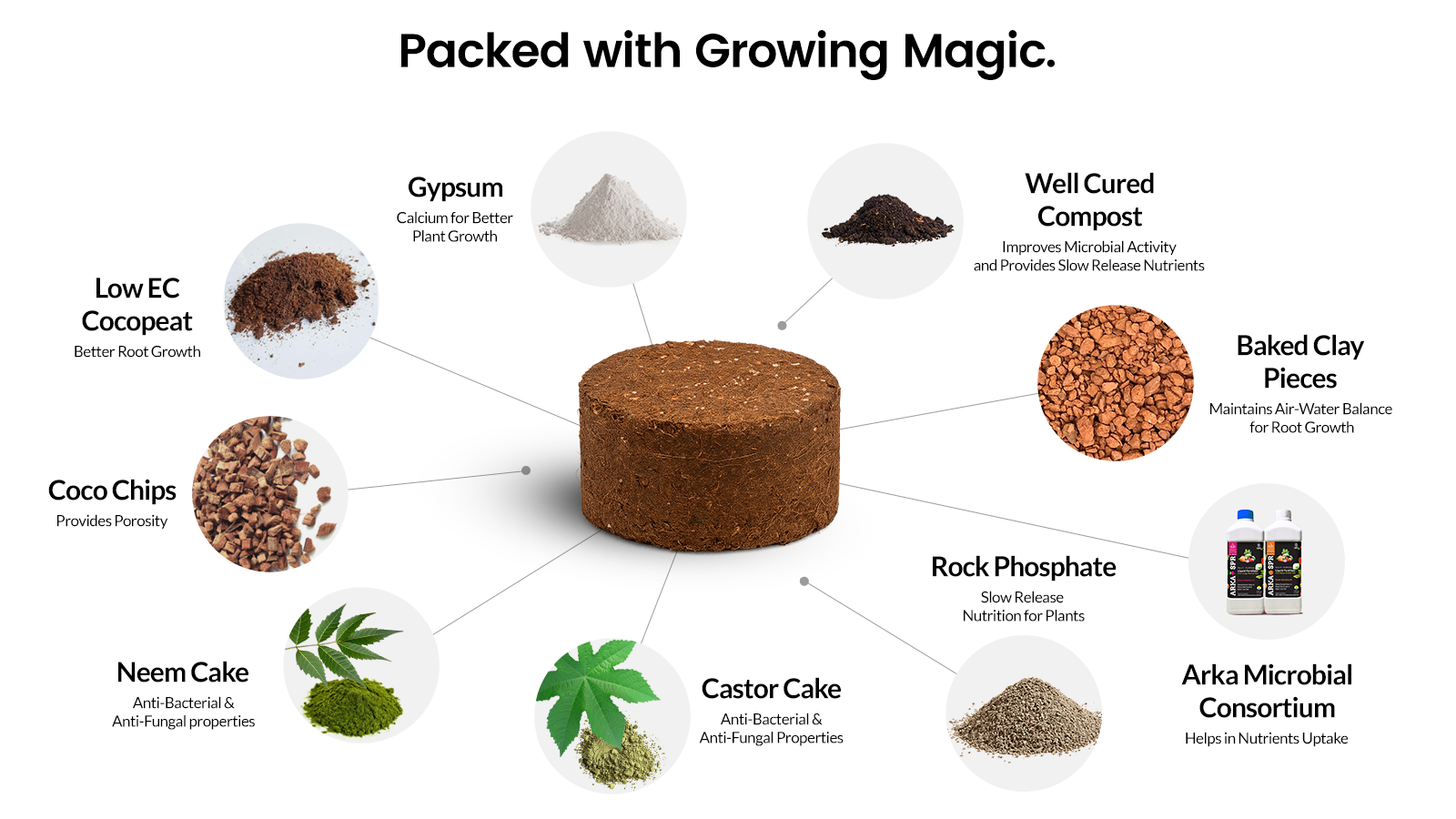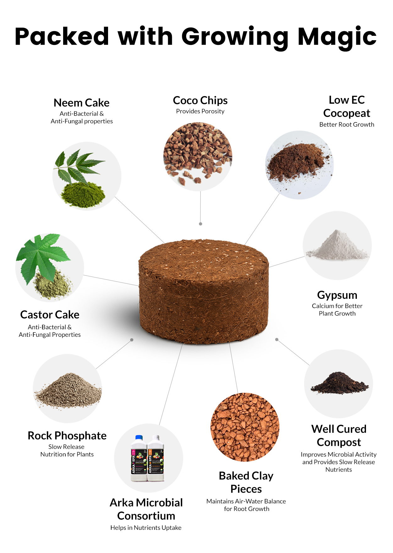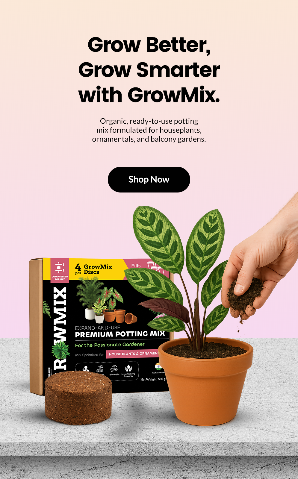 GrowMix is Smart Soil β a premium, organic potting mix compressed into lightweight discs that expand instantly with water. Made from natural cocopeat and enriched with essential nutrients, it delivers superior root support, moisture retention, and long-term plant vitality.